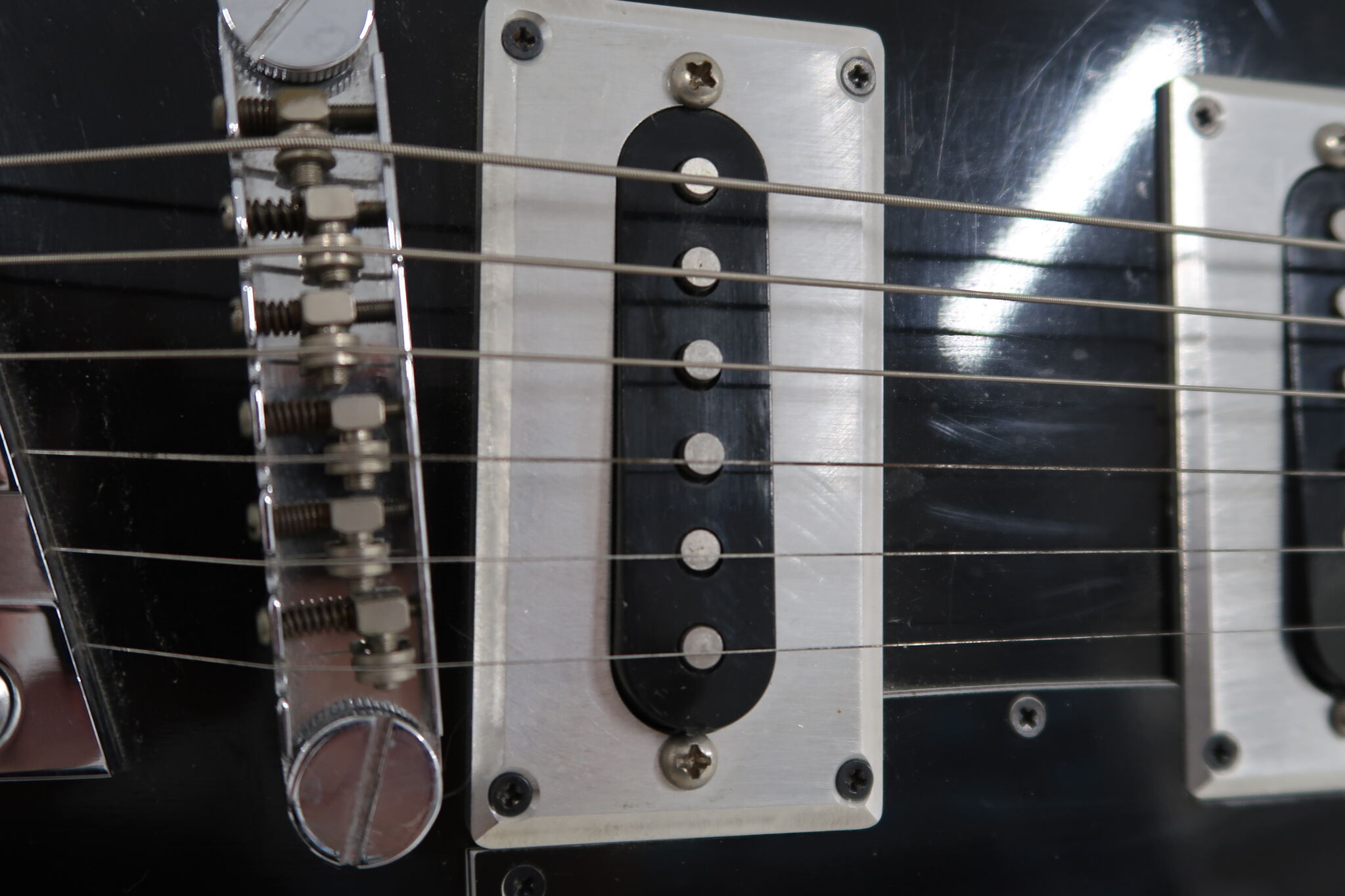 - Elektronik: Originalelektronik. Die Gitarre verfügt über zwei Humbucker, einen Dreiwegeschalter, zwei Lautstärkeregler, zwei Tonregler und einen Mini-Phasenumschalter.