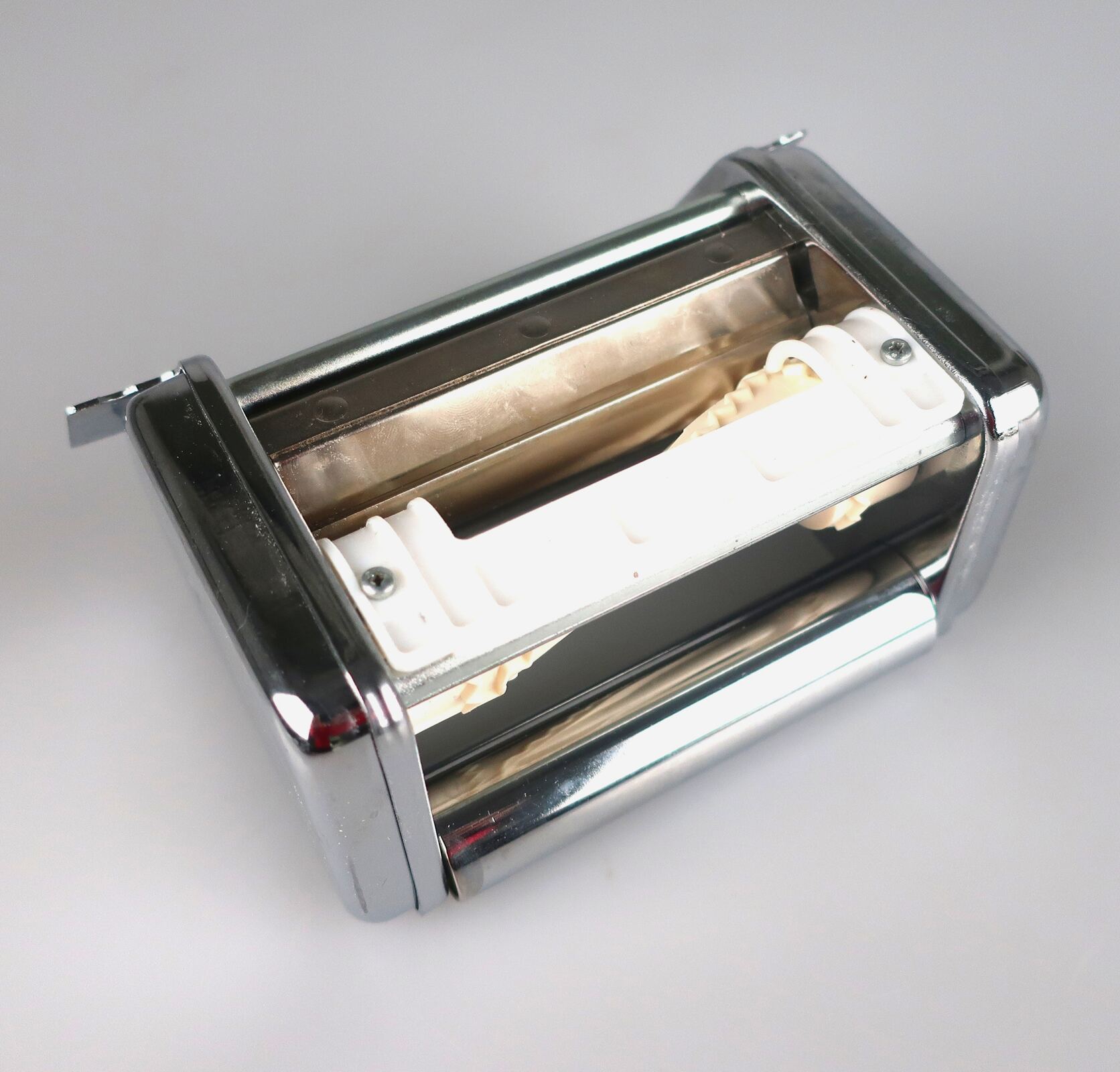 Mit Präzision gefertigt, verfügt das Atlas Design über eine robuste Struktur aus eloxiertem Aluminium und verchromtem Stahl, die Haltbarkeit und Benutzerfreundlichkeit gewährleistet. Ihr elegantes Design ergänzt nicht nur moderne Küchen, sondern spiegelt auch die geschätzte Tradition der Pastaherstellung in Italien wider. Dieser manuelle Nudelmacher ist besonders geeignet für die Herstellung klassischer Pastasorten wie Fettuccine und Tagliolini und verspricht dank seiner benutzerfreundlichen und einstellbaren Einstellungen konstante Ergebnisse.